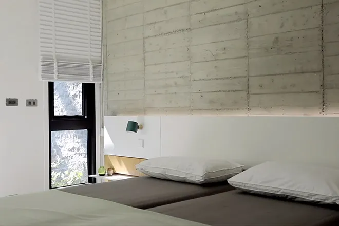 空間內不加修飾的原始材質,有拆模痕、構築過程留下的標記,環境光映照在牆上凹凸折射的紋理美感,創造出寧靜幽微的氣氛,設計發展除了保有屋況特質外,更需了解使用者過去的生活模式和對未來生活的想像,整合出最符合現階段的居住環境。