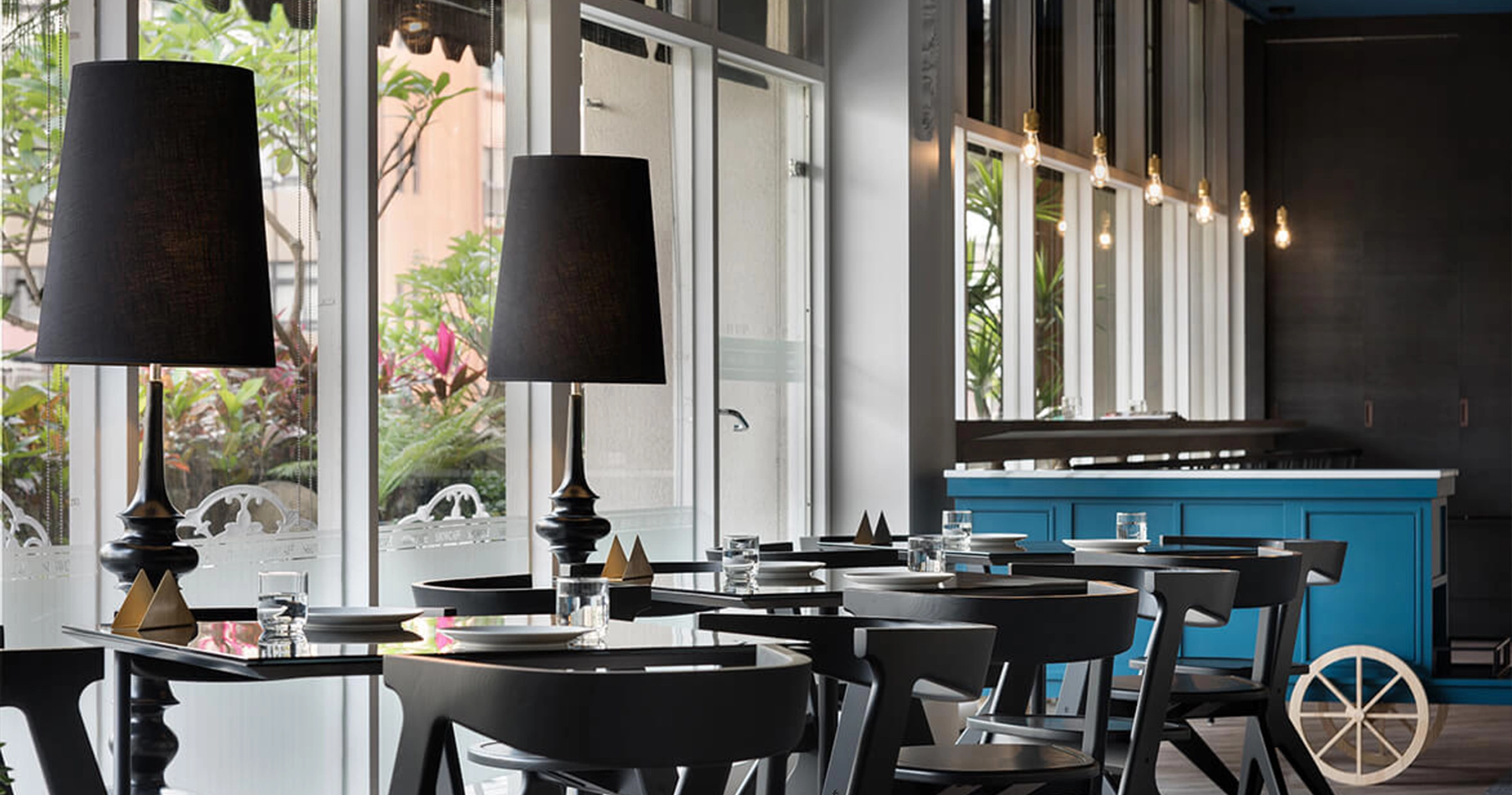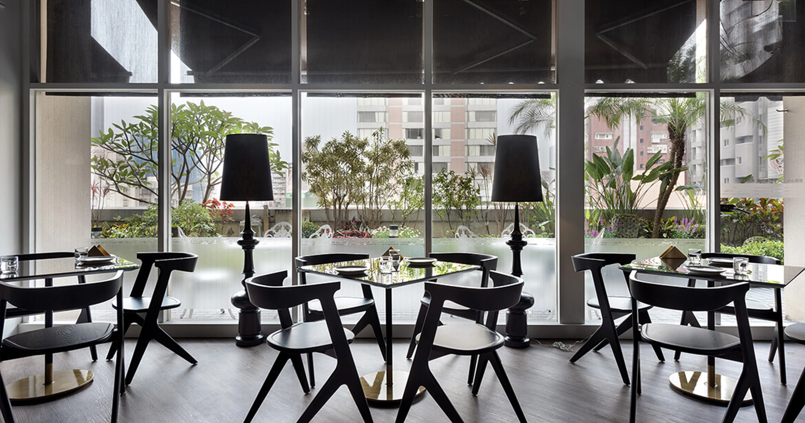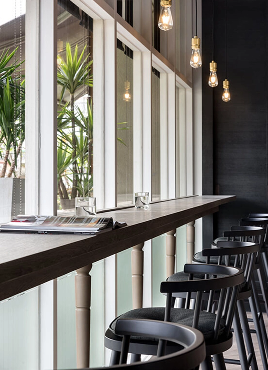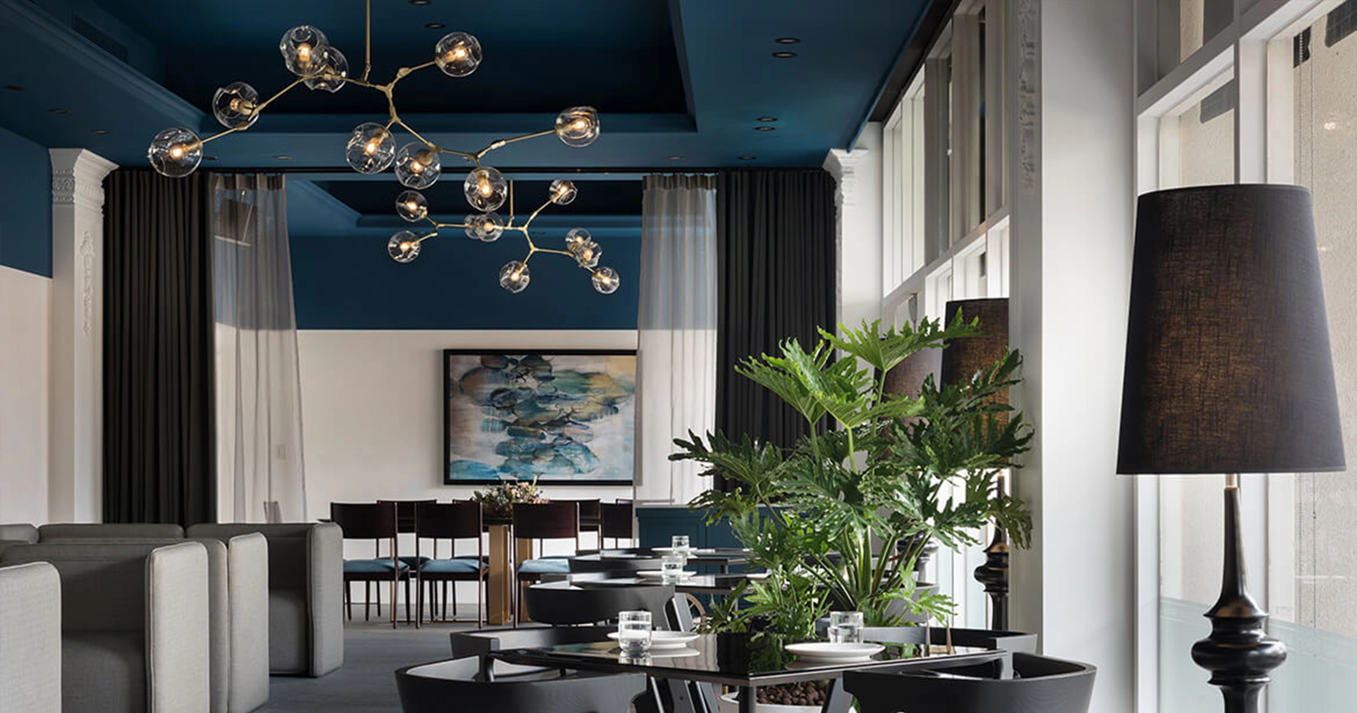 SHOWTIME Cinemas and its related business, SHOW CAFÉ flagship store, are located in Taipei Zhongshan District. In an effort to create a painting-like effect for the use of the space, we use the color of “lake-blue” as background and deliberately arrange the strong color across the entire ceiling. This technique gives us an unconventional way of experiencing the space. Furthermore, by using a pure and solid color, we erase the use of lines that tend to cause a visual disturbance. The ceiling-to- floor windows allow the scenery of greens to be evenly distributed in every corner of the space, strengthening the depth of the space and polarizing the elegancy of the classical details of the interior vividly.