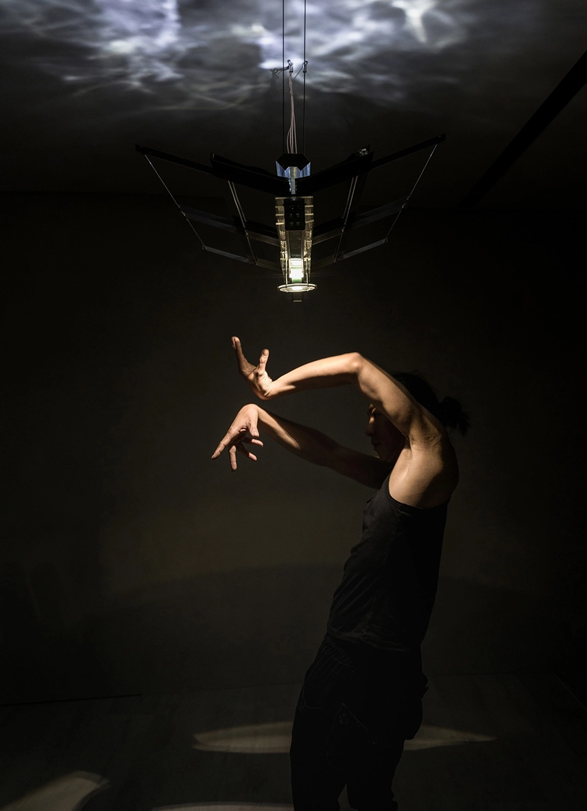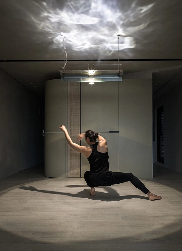 There are several distinctly and sharply outlined clouds floating in the sky. The moonlight dyes the rims of the clouds into fantastic colors and probes downward to the people on the earth. We naturally swing our body rhythmically to the sound and the wind of surroundings. Astral movement is definitely not by chance. Closing our eyes, feeling the light shine on our skin when we dance, our body and shadow are dancing in the space.
