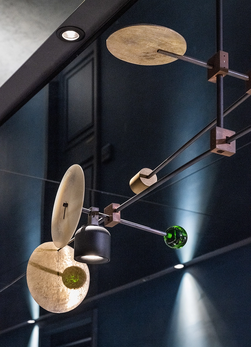 The main axis segments of the design are combined into independent objects. The weight and balance can be freely adjusted. It also implies three different three-dimensional dimensions, allowing the vision to find the correlation between objects. The changeable nature of the objects ensures the freedom of use of lighting in different spaces.